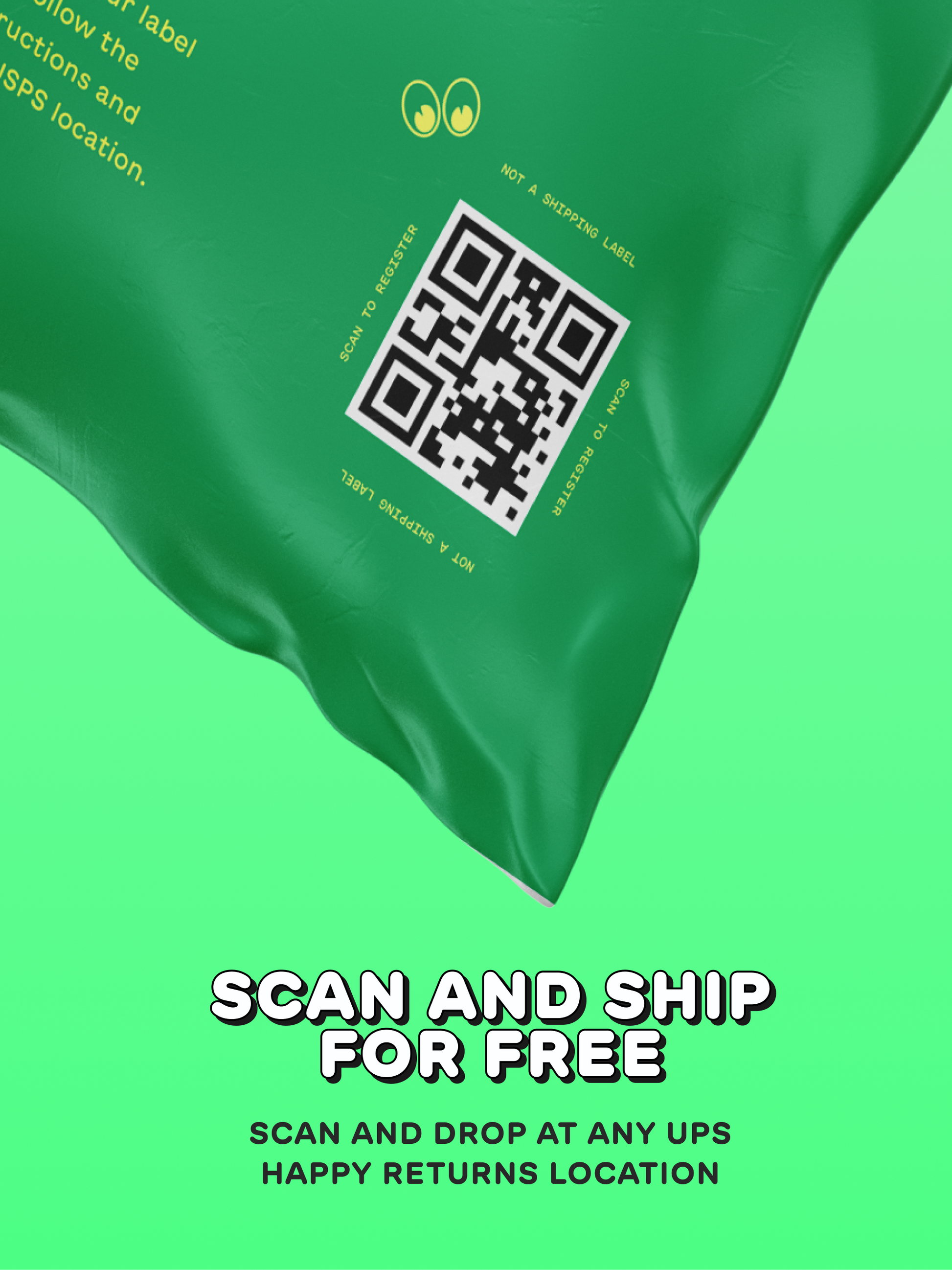 Scan the QR code on your bag for shipping instructions. The easiest option is to drop off your Take Back Bag at any Happy Returns UPS location. Alternatively, you can print a mailing label for UPS. The QR code on your bag and the shipping QR code are different.